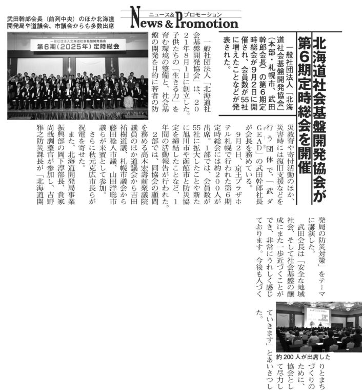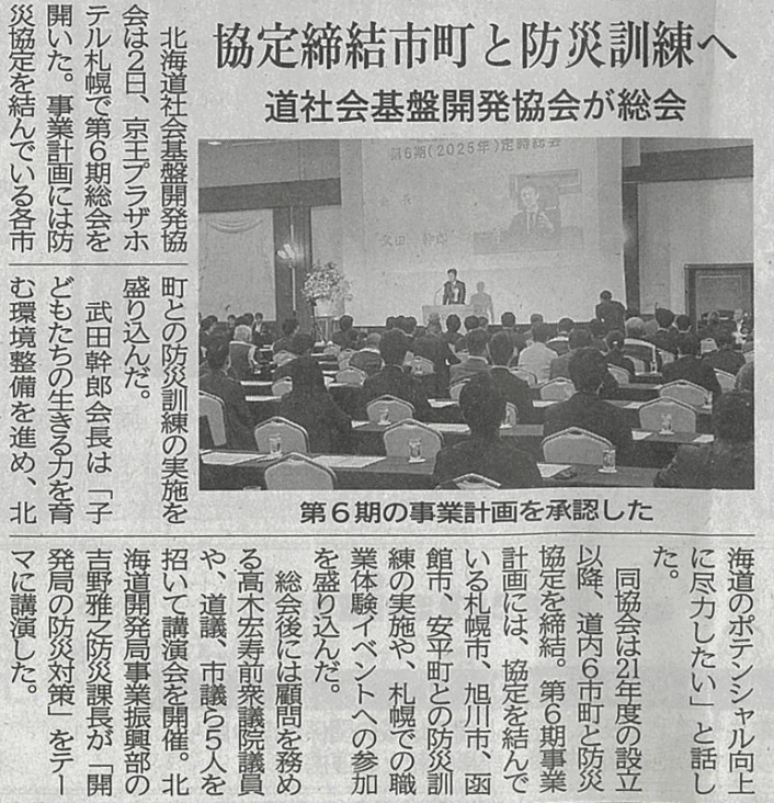 なお、今回の定時総会につきまして、北海道建設新聞社様、財界さっぽろ様にご掲載いただきました。