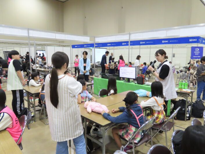 当協会は保育士の仕事を体験できるブースを出展し、約120名の児童にご参加いただきました。ブースでは人形を用いた実習や絵本の読み聞かせなどを行い、保育士という職業への興味・関心を高めていただくことができました。